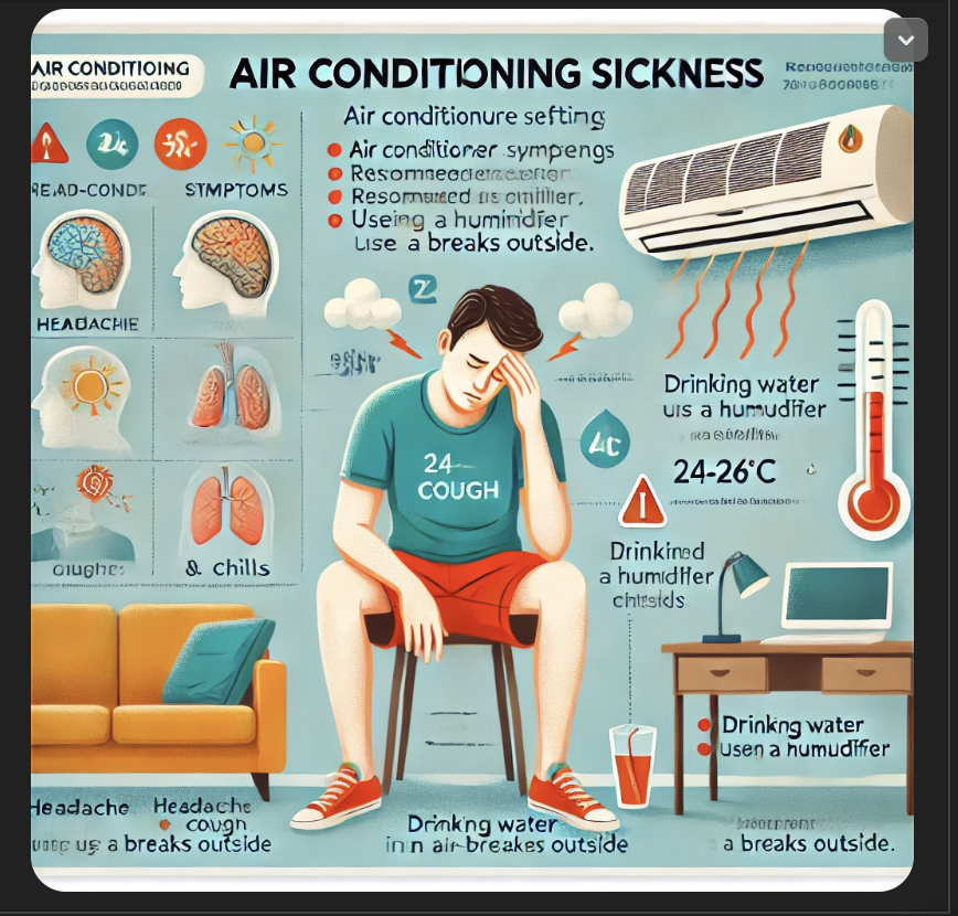 안녕하세요 나의 웰니스입니다! 제가 이번에 에어컨 바람을 많이 쐐서 그런지 바로 감기가 걸렸습니다... 냉방병은 여름철 실내에서 에어컨을 사용하면서 발생할 수 있는 건강 문제입니다. 갑작스러운 온도 변화나 에어컨의 과도한 사용으로 인해 다양한 증상이 나타날 수 있으며, 이에 대한 적절한 관리와 예방이 필요합니다. 이 글에서는 냉방병의 주요 증상인 열, 기침, 두통, 예방법, 그리고 에어컨의 적정온도에 대해 자세히 알아보겠습니다.