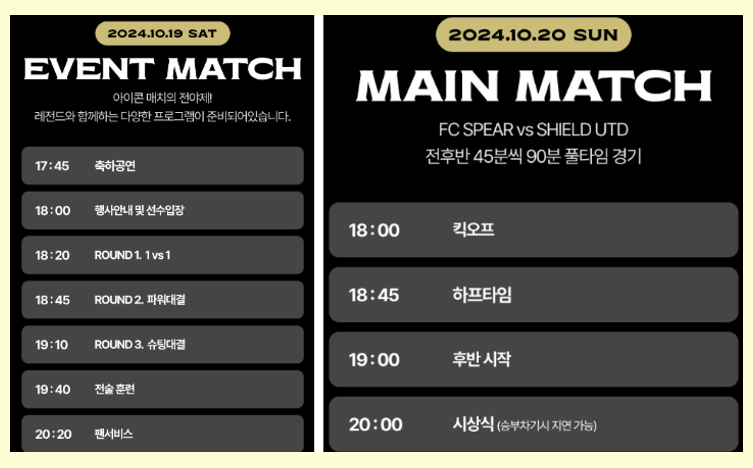 - 10월 20일: 메인 경기와 하프타임 이벤트