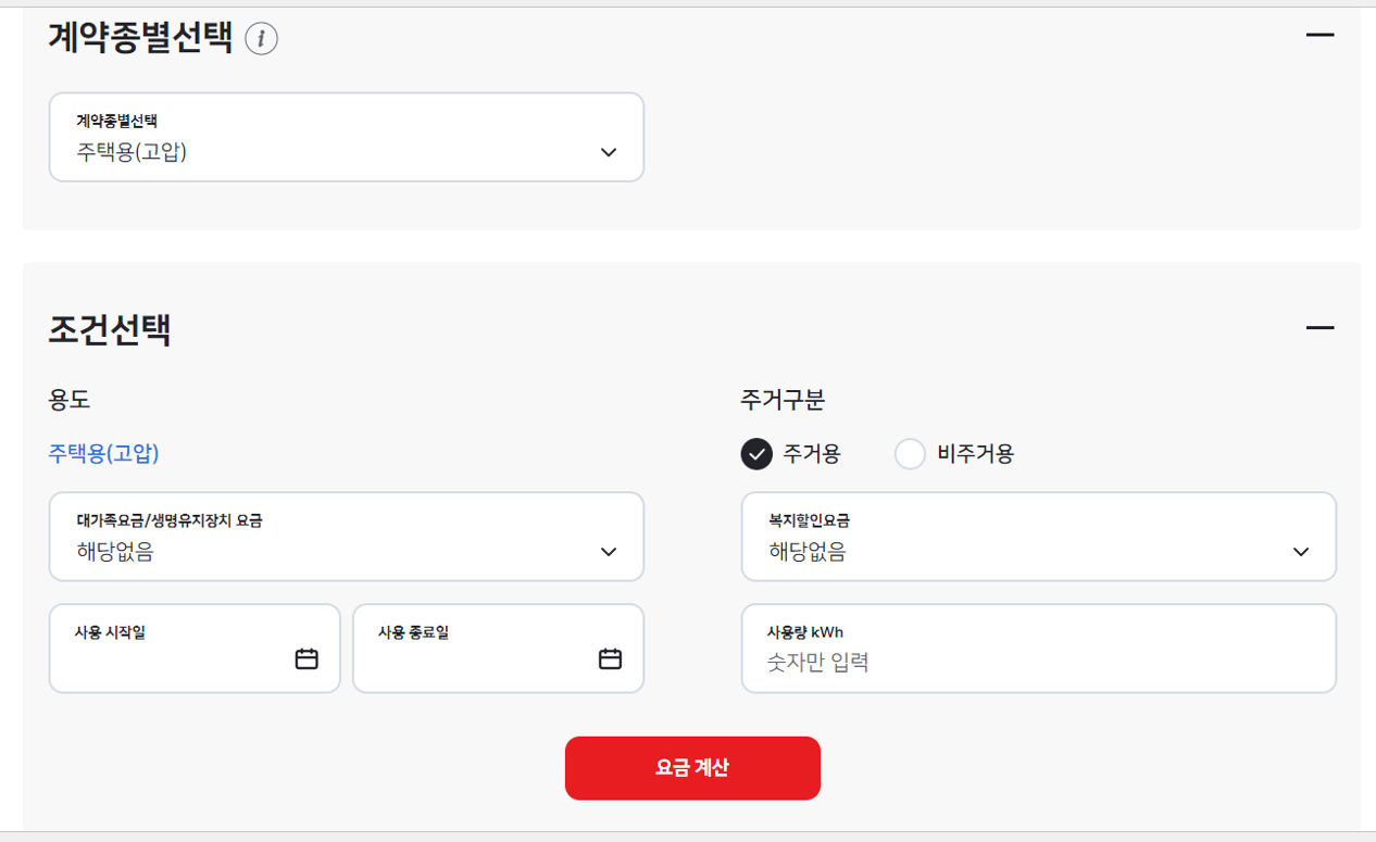- 계산 결과 확인: 사용량을 입력하면 해당 월의 요금이 자동으로 계산되어 나옵니다.