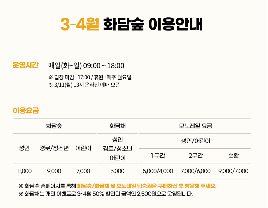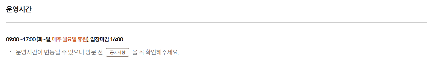 - 🌿 운영 시간: 09:00 ~ 18:00 (입장 마감 17:00)