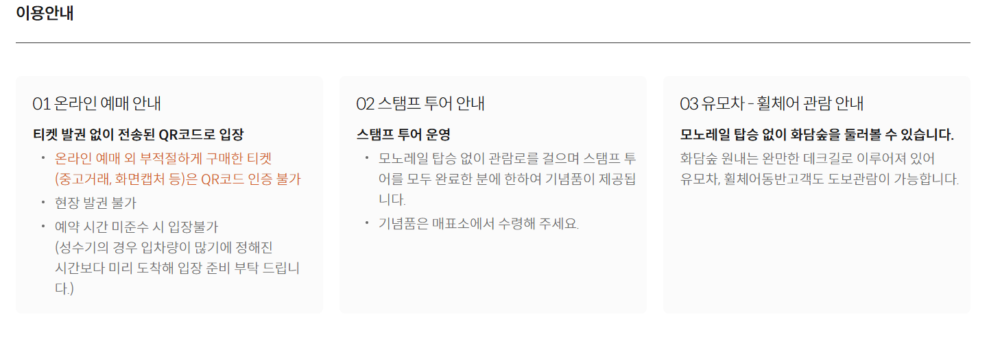 - 여유롭게 숲을 둘러보려면 늦어도 오후 3시 전에는 입장하는 게 좋아요!