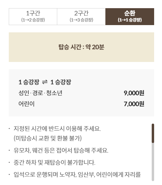 📌 운행 구간: 1구간(5분), 2구간(10분), 전체 순환(20분)